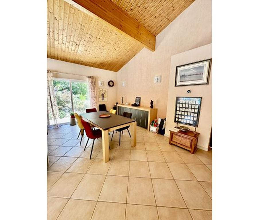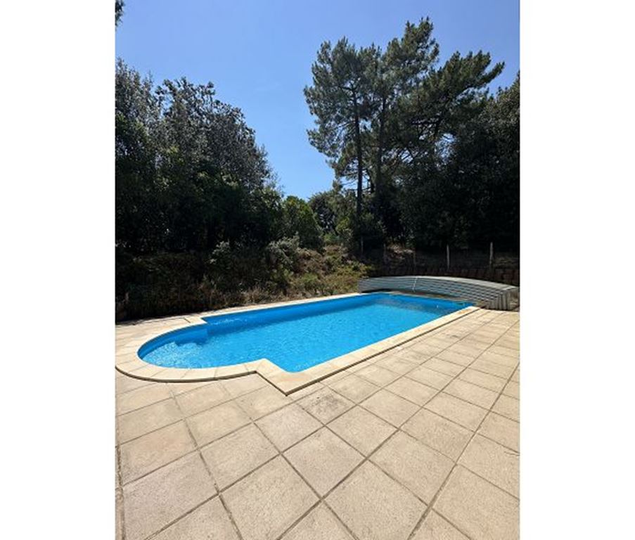 Un escalier permet de descendre au rdc et d'accéder au garage de plus de 100m² comprenant également une trés belle cave. A l'exterieur, vous disposerez d'une terrasse couverte pour vos repas ainsi que d'une belle piscine 9*4,5 dont le liner date de 2024.